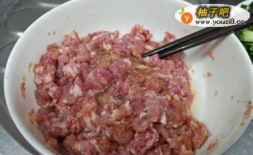 4将猪肉放在碟上,放上咸蛋黄,用筷子在肉饼上刺多个小孔,放入蒸炉大火蒸12分钟