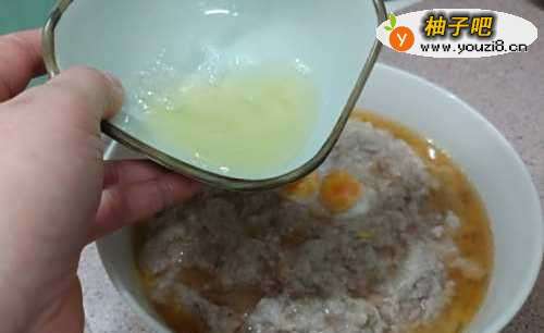 5取出把余下的半分蛋白淋在肉饼上面,再蒸五分钟或至熟透