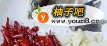 13待辣椒变色,捞出一半的花椒、辣椒待用;将蒜片和姜倒入锅中,炒出香味。