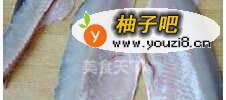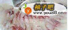 5鱼皮朝下,斜刀切除鱼身的大刺片,再切成薄厚适中的鱼片。
