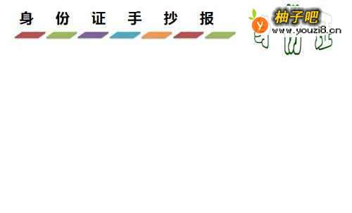 4在【身份证手抄报】标题的下方右侧处,在框内写上字,如下图所示。