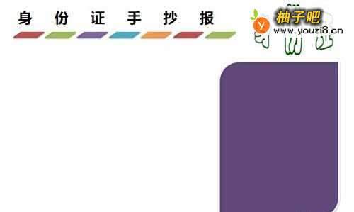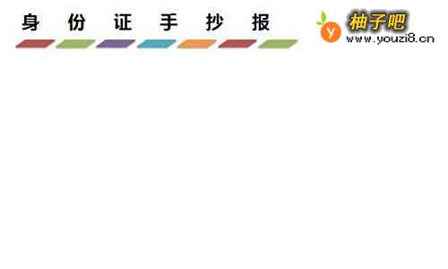 首先,用彩笔在白纸上,画出含有立体感小长方形框架并涂上颜色,在白纸的顶部靠左写上字:【身份证手抄报】的标题,如下图所示。