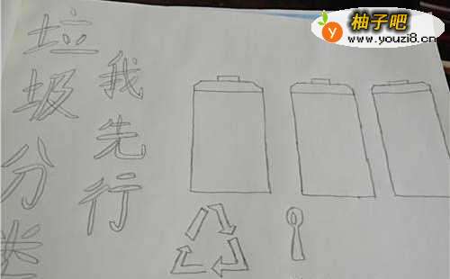 5画好后,我们在从标志旁边画上另一个厨余垃圾的标志。