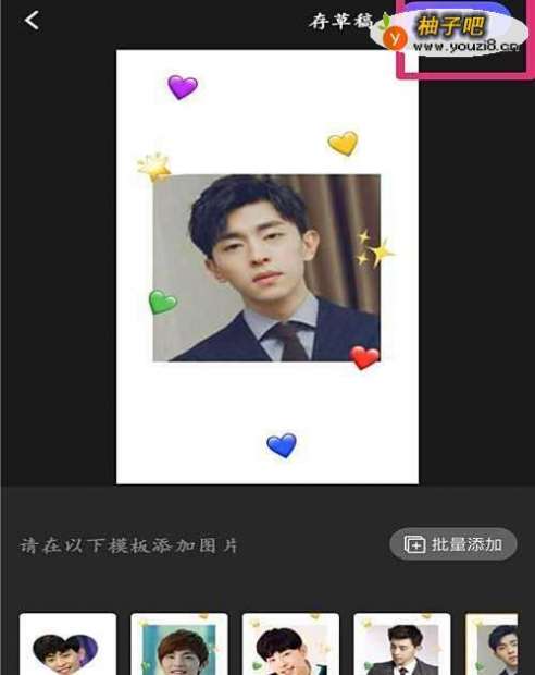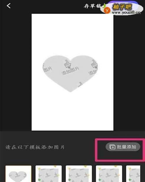 3进入制作环节后,点击下面的批量添加,然后从照片库中找到合适的照片添加进去。可以替换五张照片