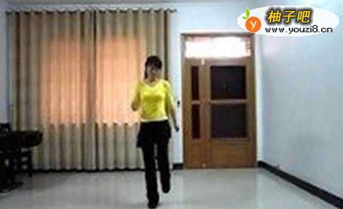 5第五,右脚不动,左脚在左侧点地8后,左脚向右侧走,超过右脚踏地,这时左脚成为主力脚,是9,然后右脚及时并到左脚旁,注意是点地,不能踏实了。是10 。
