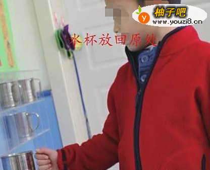 首先请幼儿认识教室里面的杯柜(放杯子的木柜子),并知道自己的杯子在哪个位置。