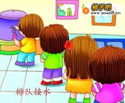 接到水后到旁边指定的位置喝水,避免影响下一个幼儿接水。