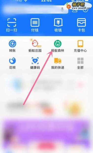 首先在支付宝的首页中“显示了蚂蚁森林程序”图标