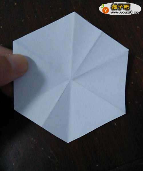 准备好正六边形纸,我们先把纸的每条中线对折。