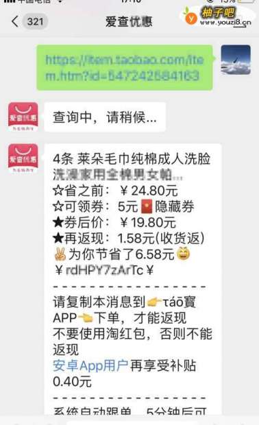3复制公众號回复给你的消息,返回某宝,他会自动提示,打开即可,有券就领券,没券就下单就行