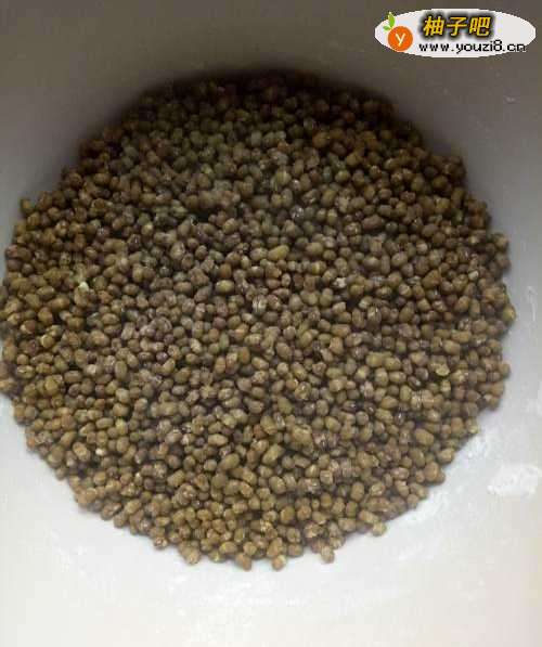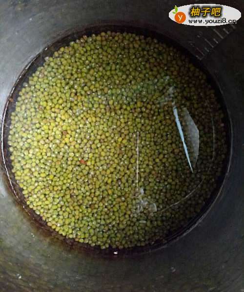 将绿豆洗净,倒入水浸过绿豆,像蒸米饭一样,倒入刚刚好的水,按高压锅的蒸。
