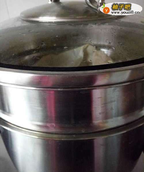 5倒入盛有开水的䒱锅内,中火蒸10分钟后出锅。