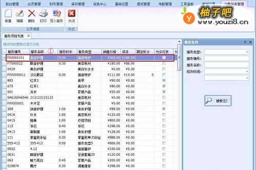 美容院会员管理软件,服务项目信息管理功能,可以帮美容院店铺管理里好各项服务项目的信息如类型、项目名称、价格、成本、项目时长、是否享受折扣、积分等。下面以傲蓝美容院会员管理软件为例,给大家操作说明一下。