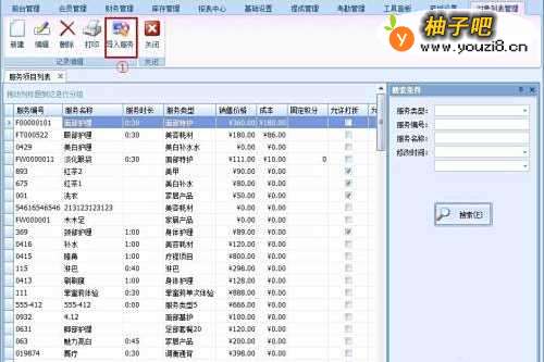 5美容院会员管理软件服务项目管理,具有快速导入服务项目的功能,快速导入步骤如下: