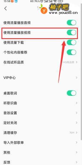 3将方框中的开关开启即可设置小米音乐通过流量看视频。