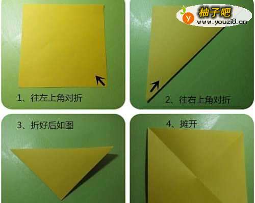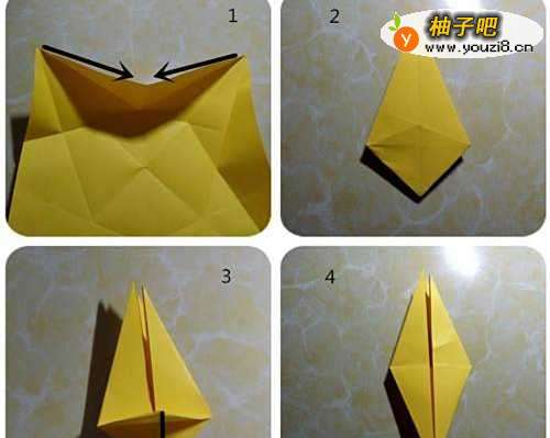 3接着分别将相邻的两角靠拢折叠,一共4边。具体操作看图