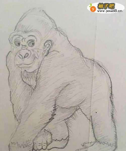 猩猩 歪果人都叫它们 森林中的人 属于灵长目人科 即猿猴 和猴子不同点是没有尾巴 而且手和脚都能拿东西 下面我们就画画大猩猩的简笔画