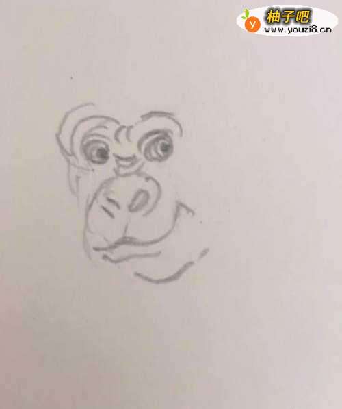 2第二步 画上大猩猩的脸部 眼睛 鼻子 嘴巴