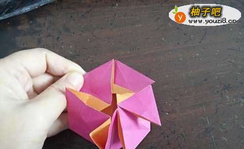 6所有的都折好后,如图二,然后把中间撑开就可以了,图三图四就是完成图。
