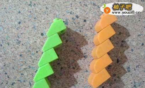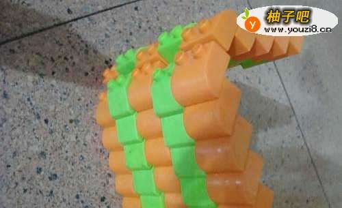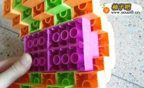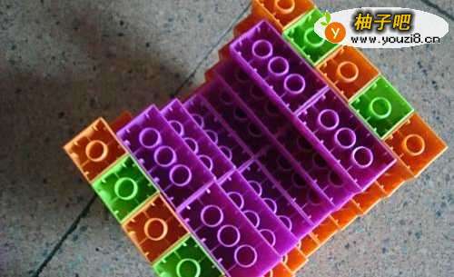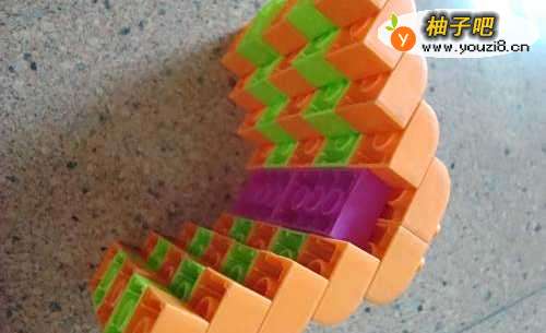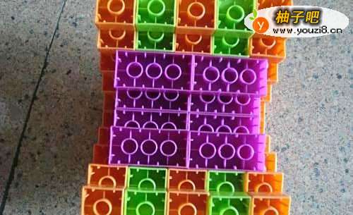 4安上两个紫红色的长方体,让它们全部连接在一起,看,可以“站”起来了