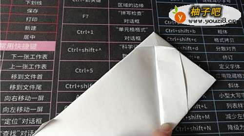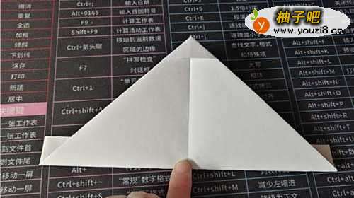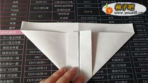 4把纸翻到另一面,如图一。再把两侧的小角向下折,如图二。