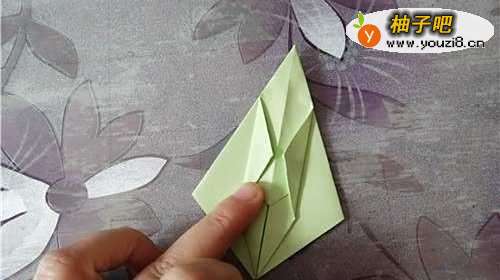 4我们把内侧的角向外拉,如图一。再把上面的角向下折,如图二。