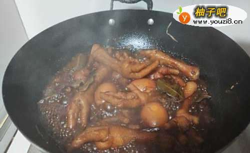 8然后把洗净的鸡爪放进去,小火煮……大概20分钟……
