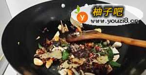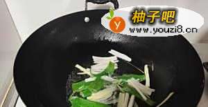 3用油爆炒一些葱,得到葱油,然后捞起葱