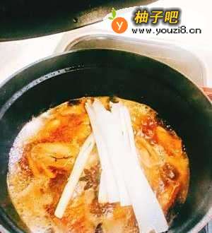 3【烧鸡翅】将开水倒到锅里,没过鸡翅,放大料、生抽、老抽,中小火慢烧20分钟,放入准备好的葱段,最后大火收汁,即可。