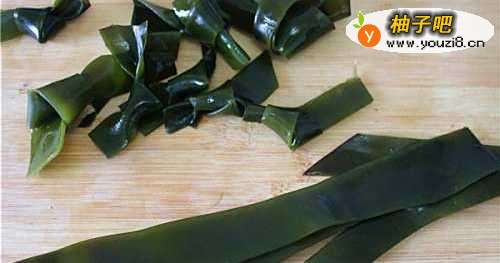 3墨鱼干洗净,稍微泡10分钟,切成丝