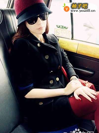 2双排扣大衣是每年的大热,金属配件能决定一件大衣的质感,宝蓝色边的细节也很特别。红黑拼色礼帽与红色连裤袜起到了呼应的作用。