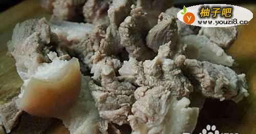 4猪蹄捞出,再过清水洗净,然后切小块备用