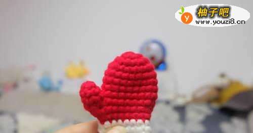 第八圈拇指上钩六针短针,脸上手套上的主体十八针。