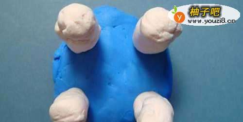 3然后,把四个圆柱形的彩泥安装在圆形彩泥上,如下图所示。