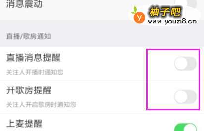 6【直播消息提醒+开歌房提醒】都开的话,我们就关闭掉他们,如图。