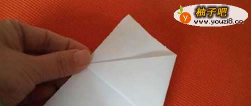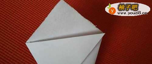 3两边的角向折痕的顶点对齐。
