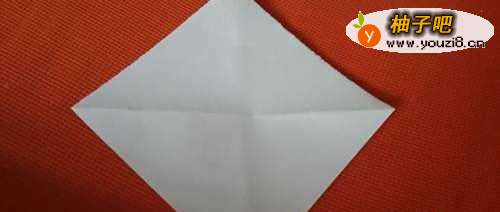 取一张正方形白纸,角和角对齐,折成一个三角形。