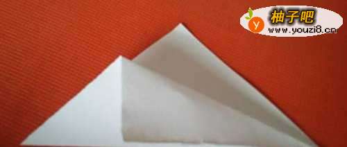 4两个角一个折向前面一个折向后面。