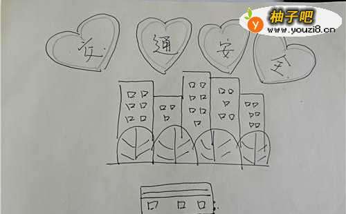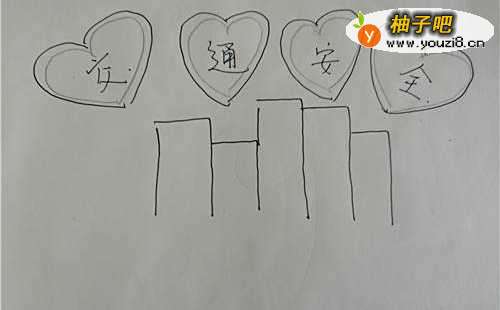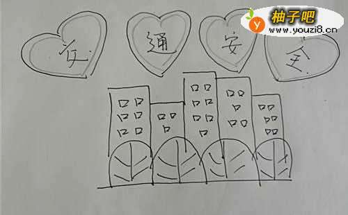 3画好后我们接着在我们提上标题的心下面画上一排高楼。