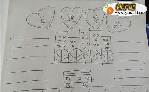 5画好后我们在我们刚画好的下面画上一辆汽车。