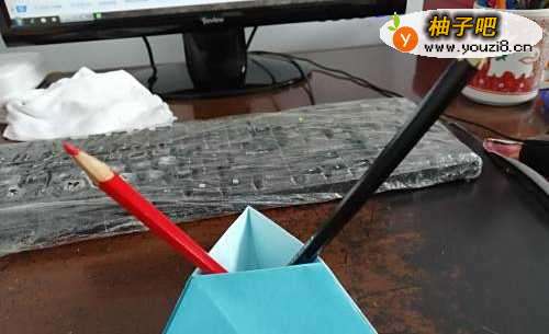 今天我们來折一个三角形的笔筒,以往的笔筒都是圆柱形的或者其他的样子。这次的笔筒是由三张折纸组和而成的,对尺寸的要求比较高。