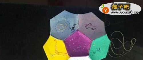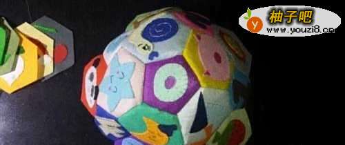 7缝制 五个五边形缀好以后,再拿出五个六边形插缝缝制。翻过来之后就是一个半球。这个半球包括六个五边形和10个六边形。