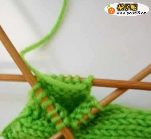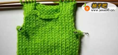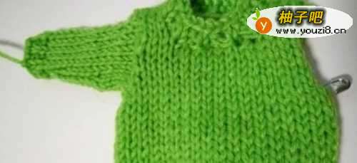 5然后把袖子挑起来,包括留下的左右袖子各两针。挑起来后开始编织下针,在腋下的延长线上根据袖子的需要的大小来收针。