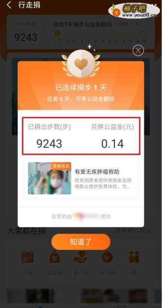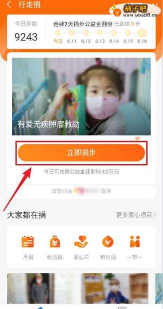 3进入行走捐界面后,点击【立即捐步】按钮即可。