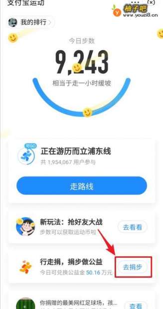 在支付宝运动里可以参加捐步做公益活动,下面来看一下是怎么捐步做公益的。