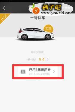 3可以看到系统自动帮你选择了合适的车型和价格,并且自动匹配了可用优惠券,没有优惠券的就无法显示。