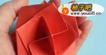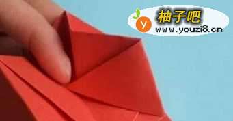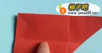 4想办法在正方形中间留条折痕。然后将多余出来的边角按照折现折进纸内。