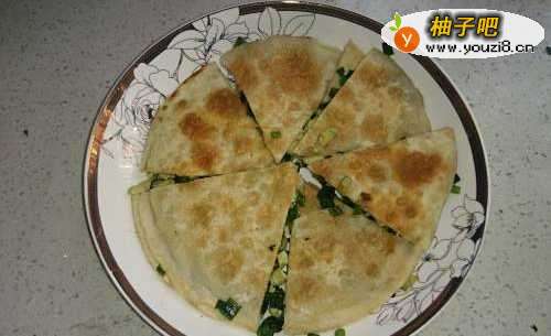 8我们把韭菜盒子拿出来,切成均匀的小块就可以吃了。
