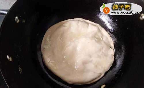 7反复翻两到三次后(大约5分钟),韭菜盒子的两面都发黄了,现在关火,然后盖上锅盖,焖3到5分钟就熟了。