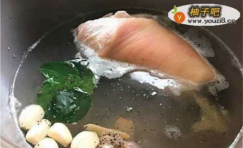 姜、蒜、葱头、黑椒、白胡椒粉、香叶,白醋煮1小时。